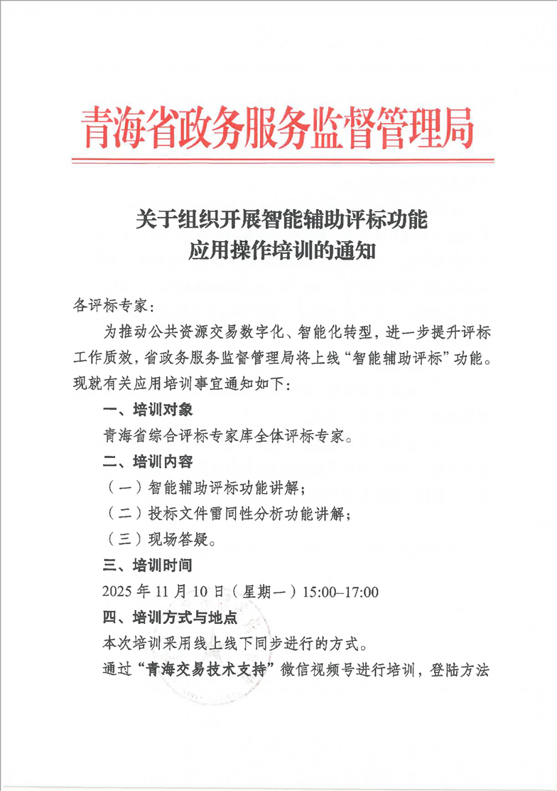 关于组织开展智能辅助评标功能应用操作培训的通知