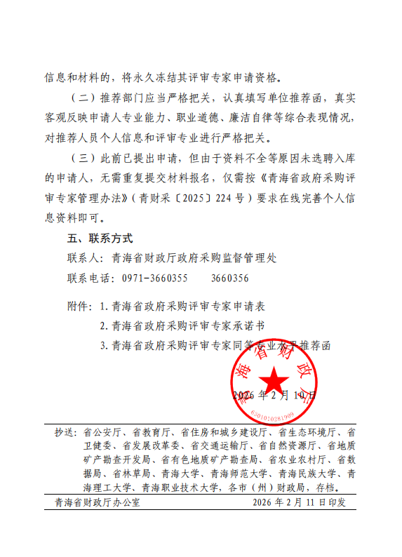 转发青海省财政厅关于公开征集政府采购评审专家的公告