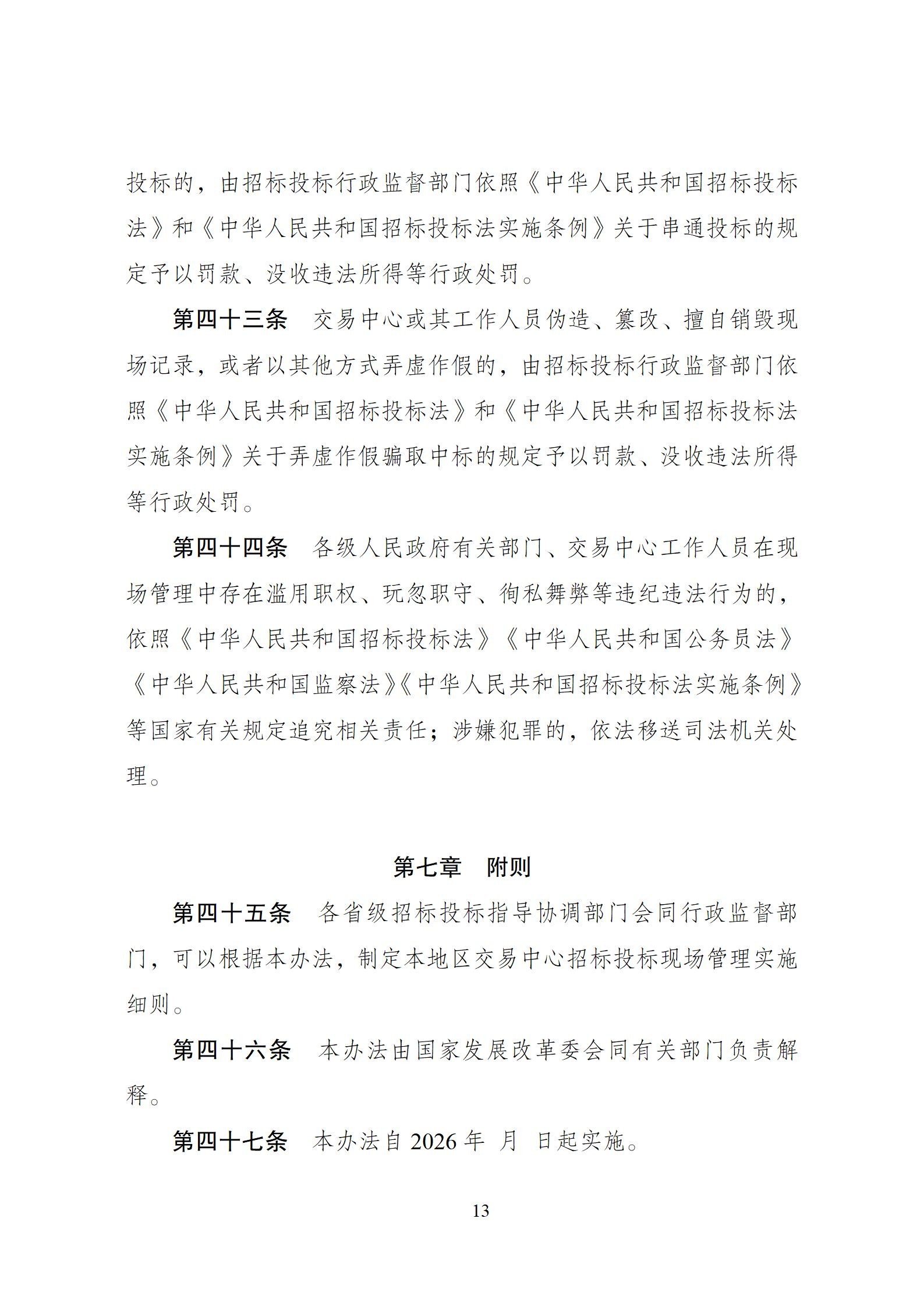 国家发改委关于向社会公开征求《公共资源交易中心招标投标 现场管理办法》(公开征求意见稿)意见的公告