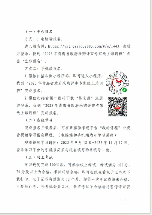 青海省财政厅关于开展2023年度青海省政府采购评审专家线上培训的通知