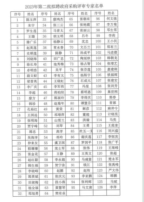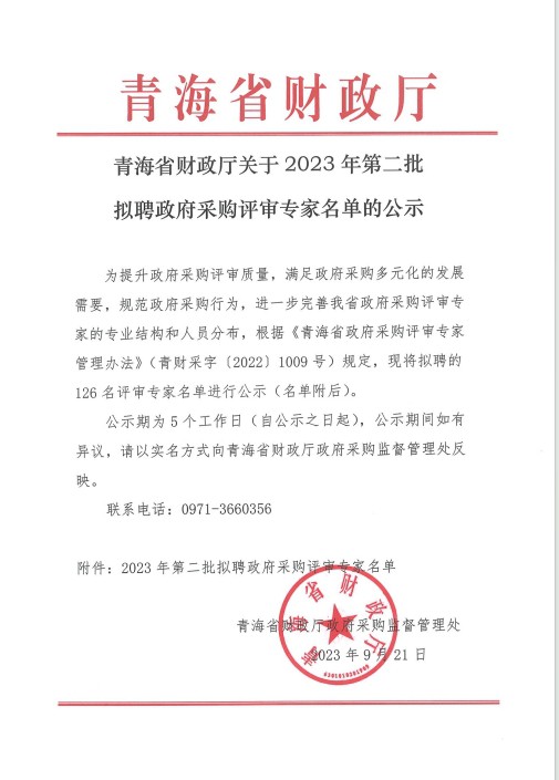 青海省财政厅关于2023年第二批拟聘政府采购评审专家名单的公示
