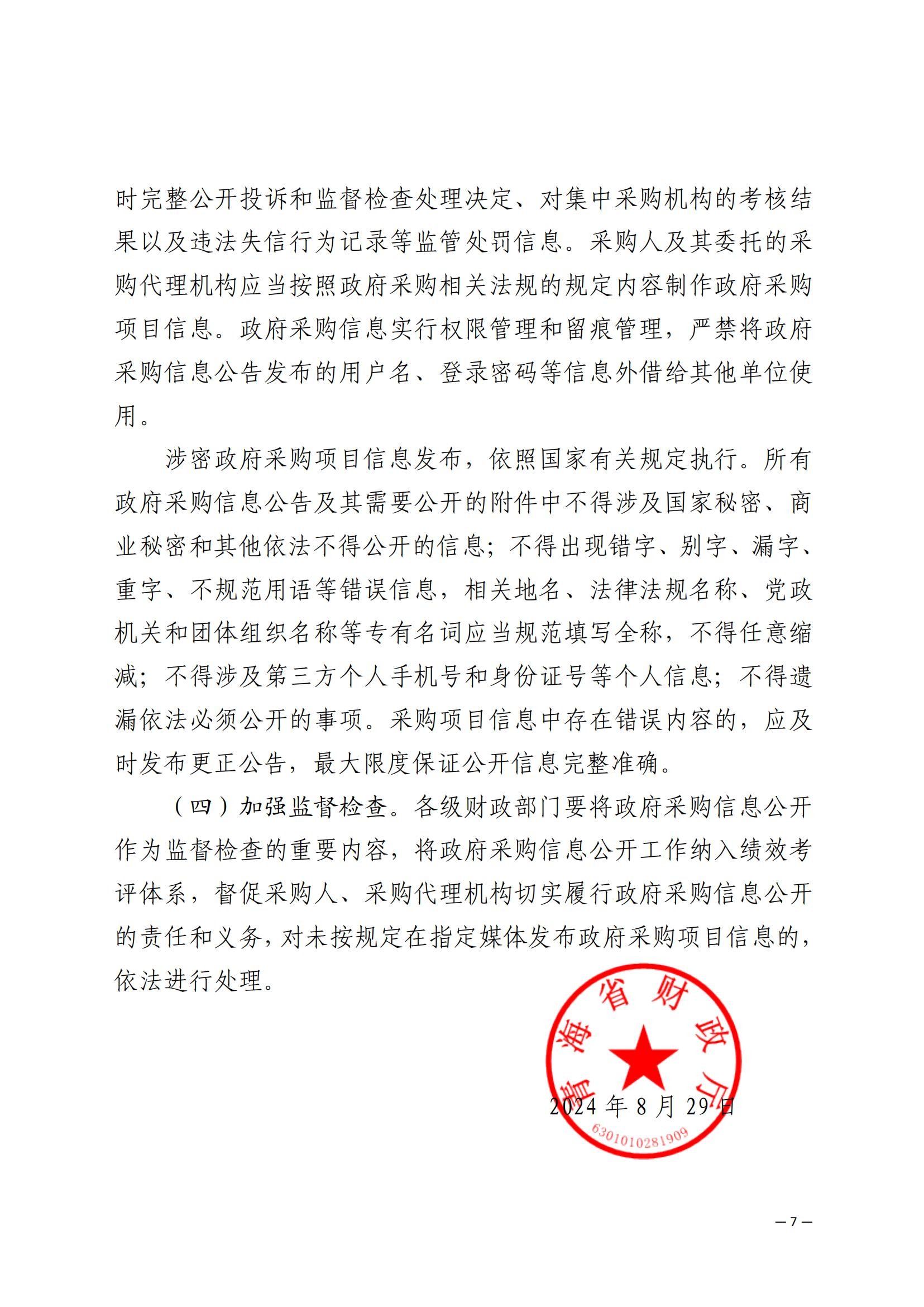 转发青海省财政厅关于加强政府采购信息公开管理工作的通知