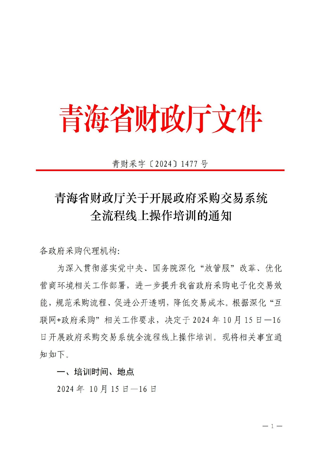 青海省财政厅关于开展政府采购交易系统 全流程线上操作培训的通知