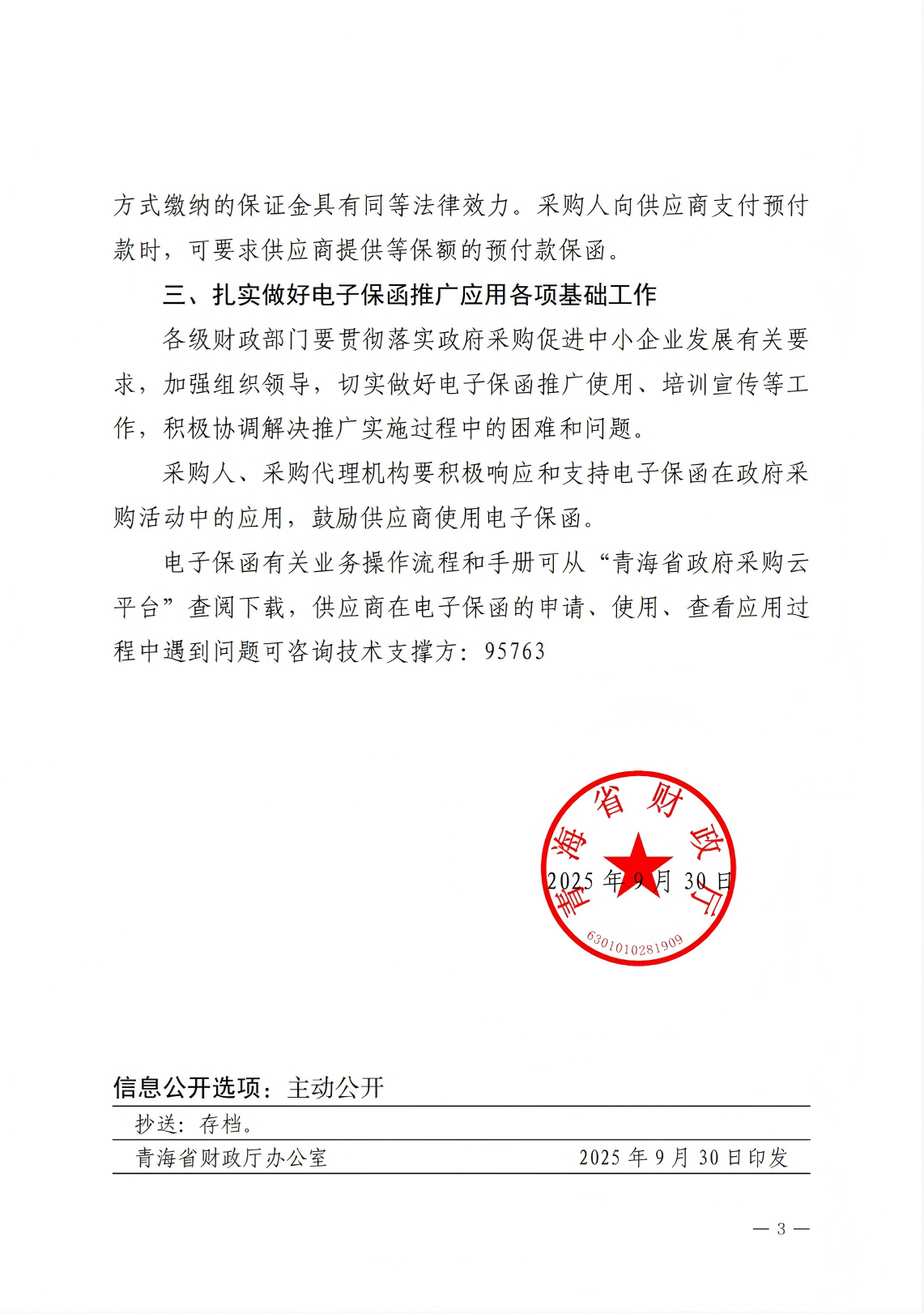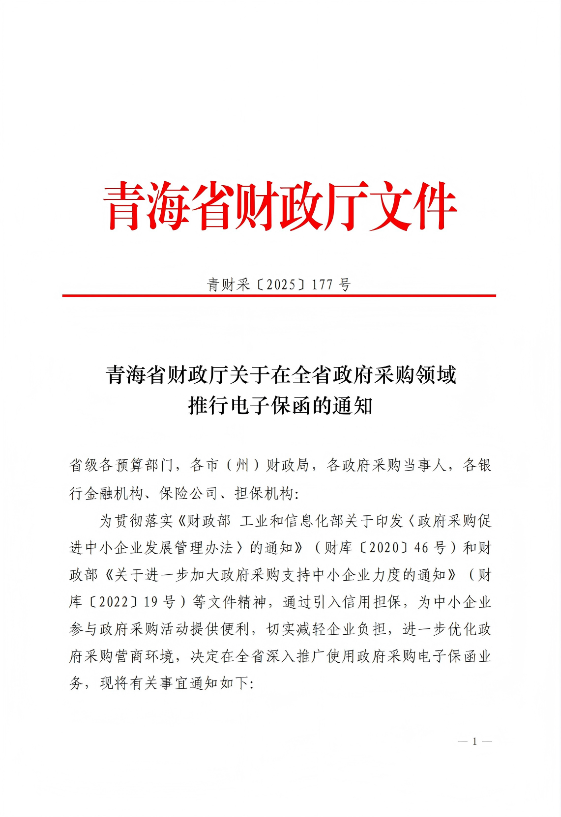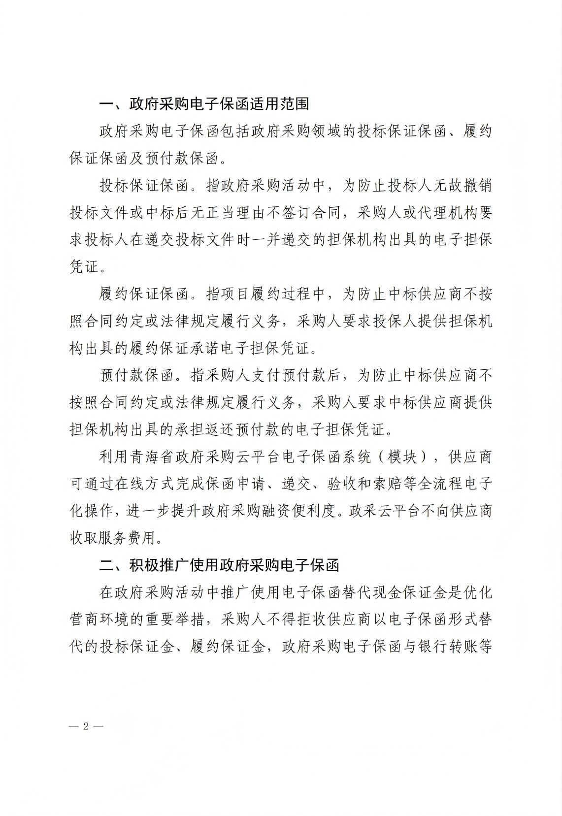 青海省财政厅关于在全省政府采购领域推行电子保函的通知