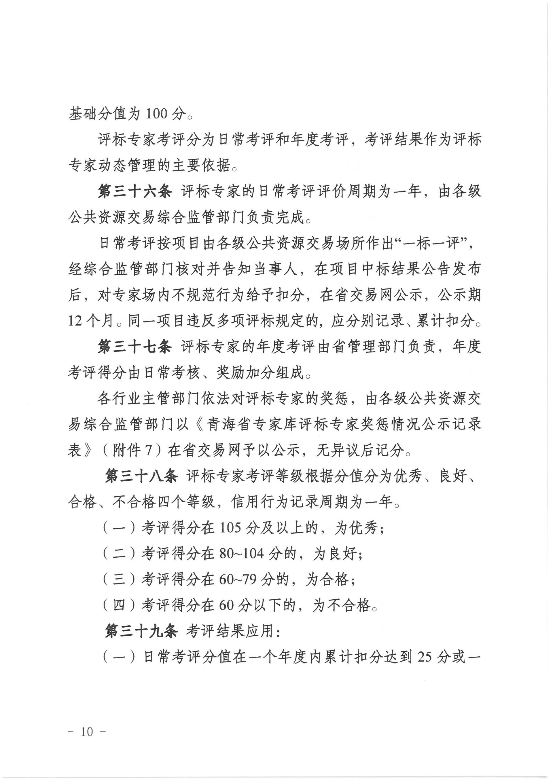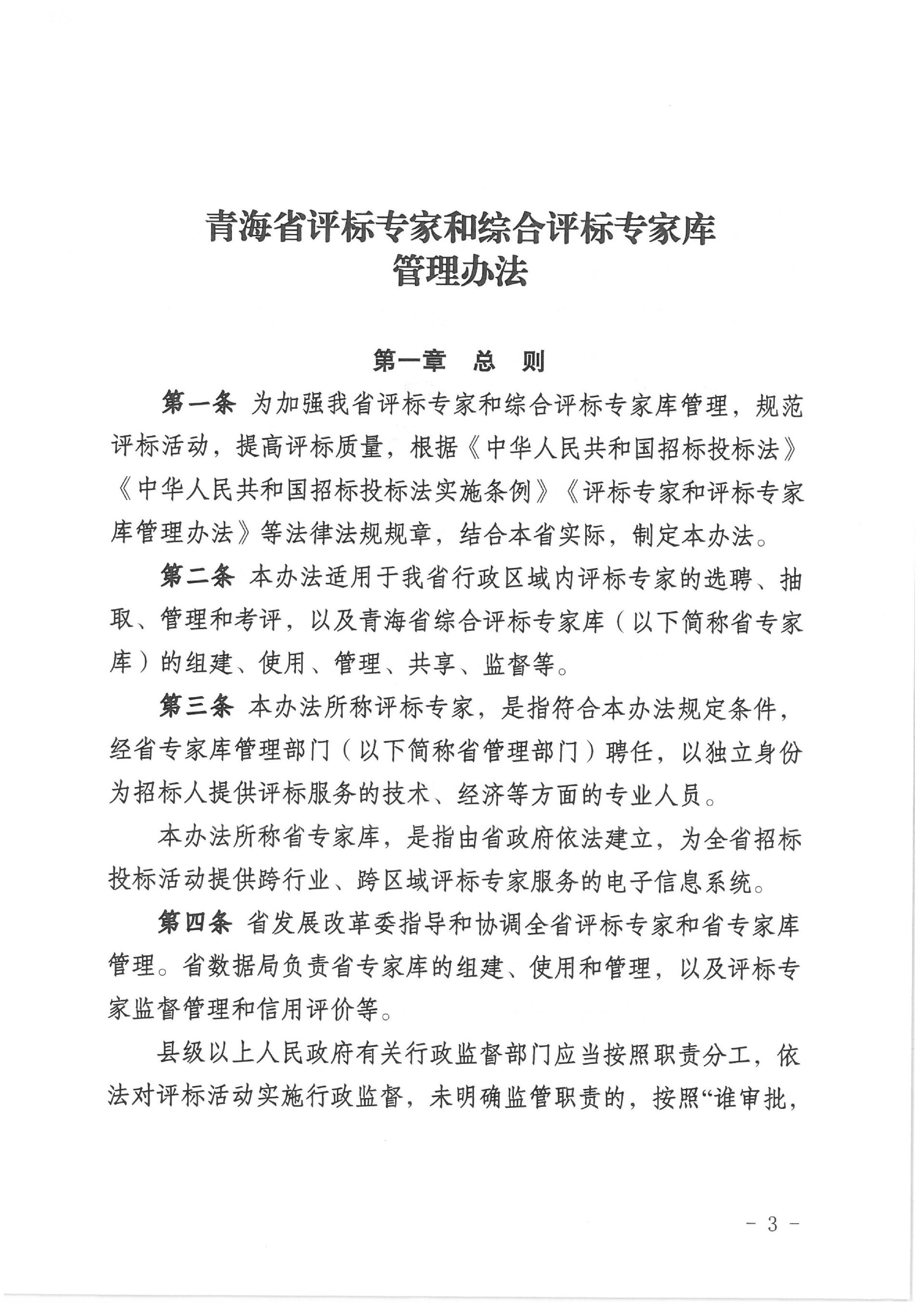 关于印发青海省评标专家和综合评标专家库管理办法的通知