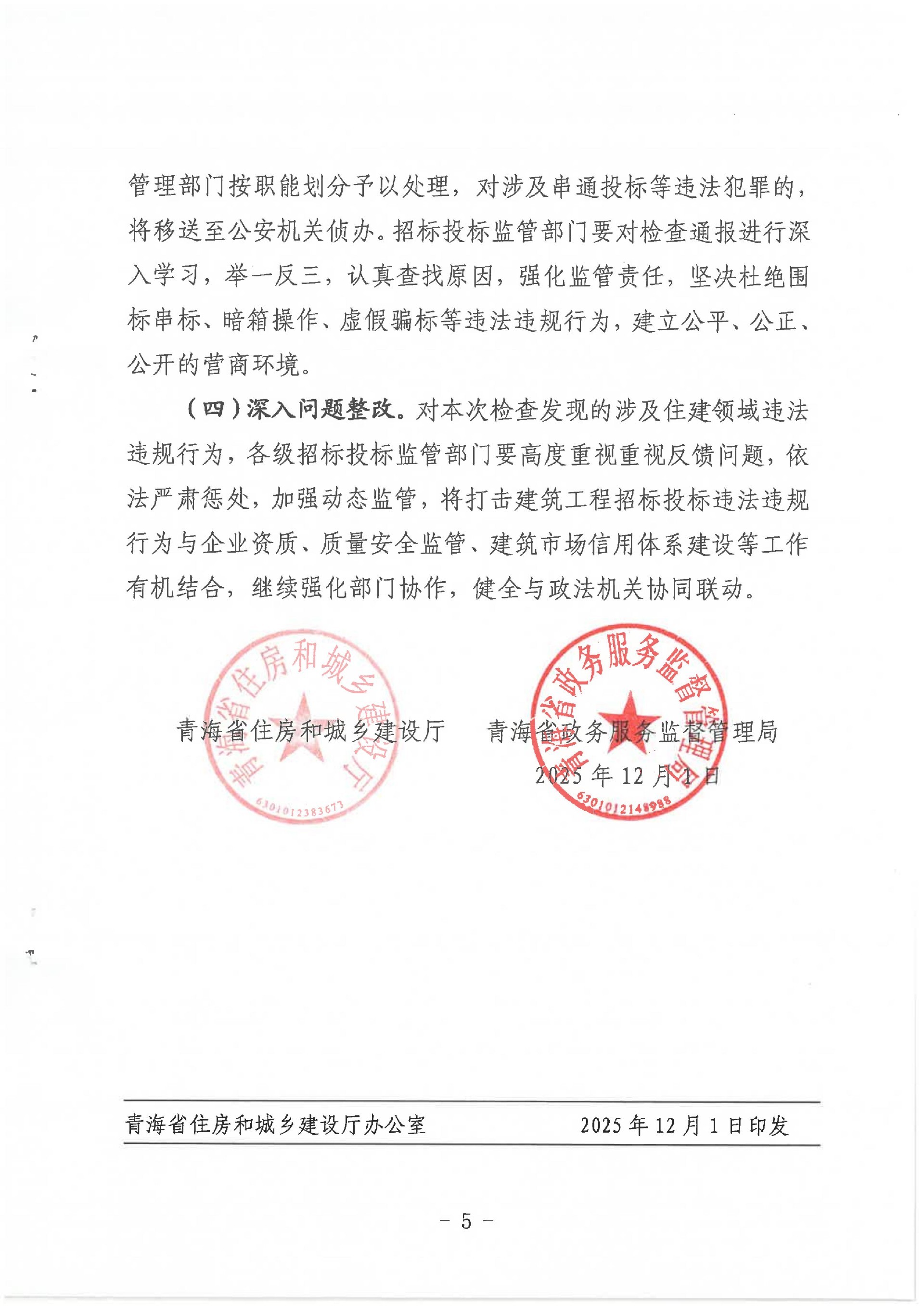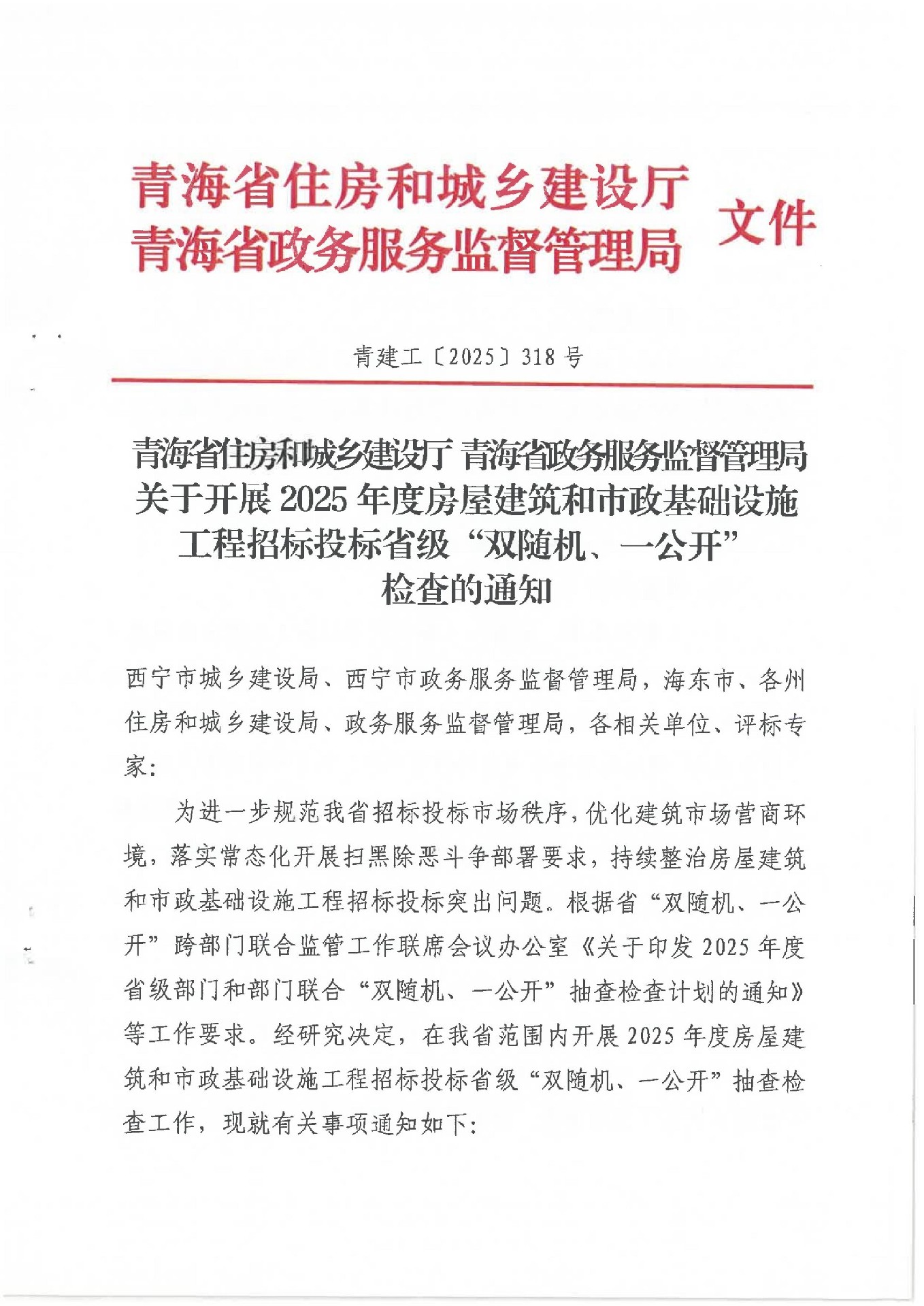 青海省住房和城乡建设厅 青海省政务服务监督管理局关于开展2025年度房屋建筑和市政基础设施工程招标投标省级“双随机、一公开” 检查的通知