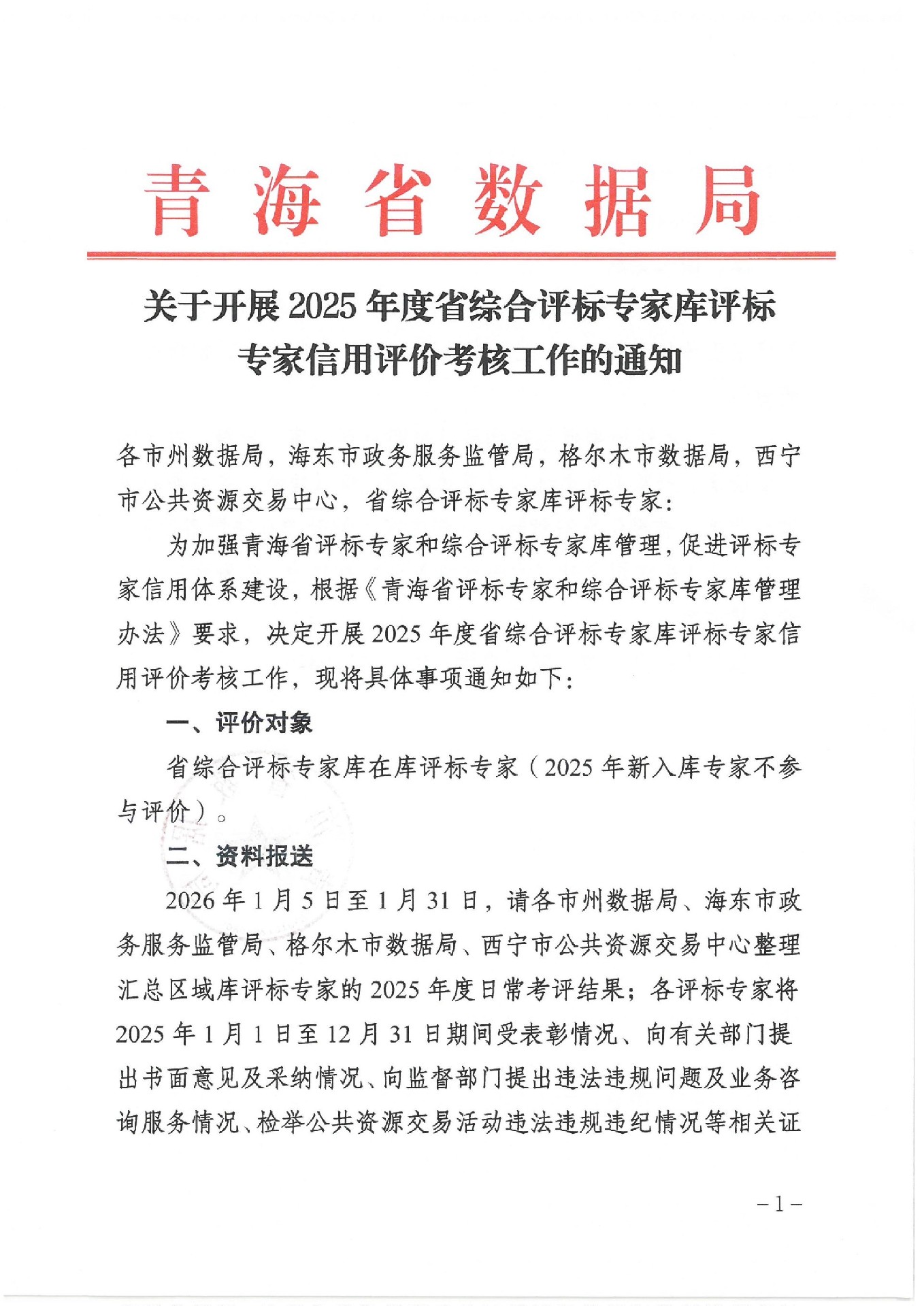 青海国德招标代理有限公司转发青海省数据局关于开展2025年度省综合评标专家库评标专家信用评价考核工作的通知