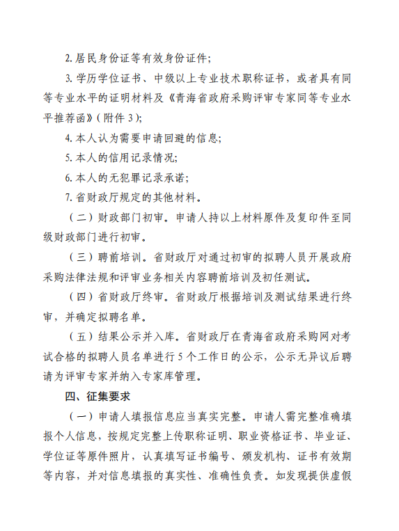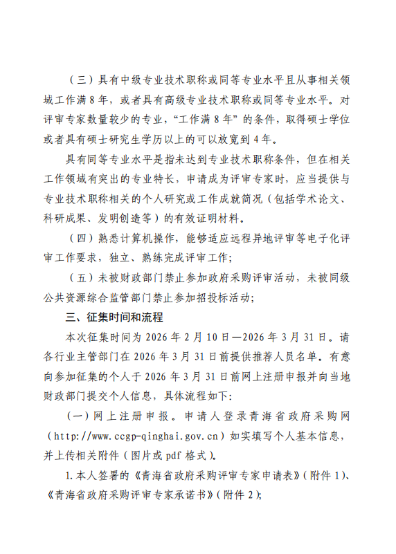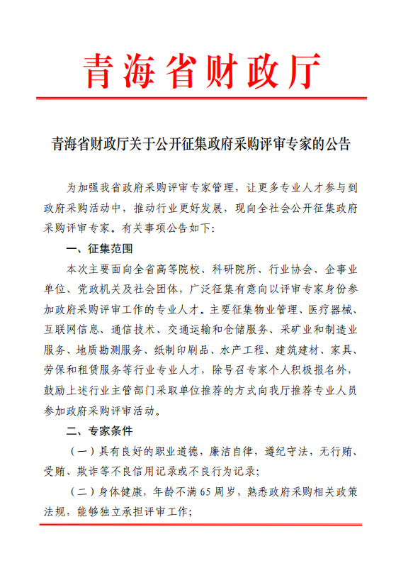转发青海省财政厅关于公开征集政府采购评审专家的公告