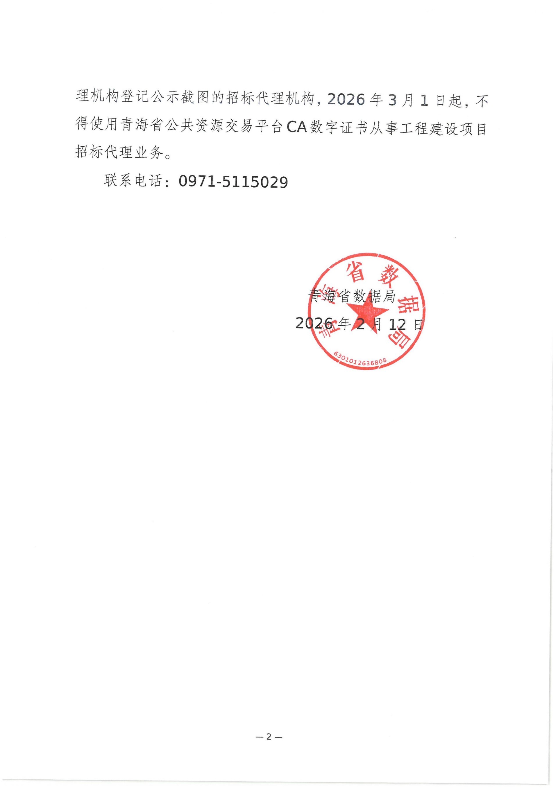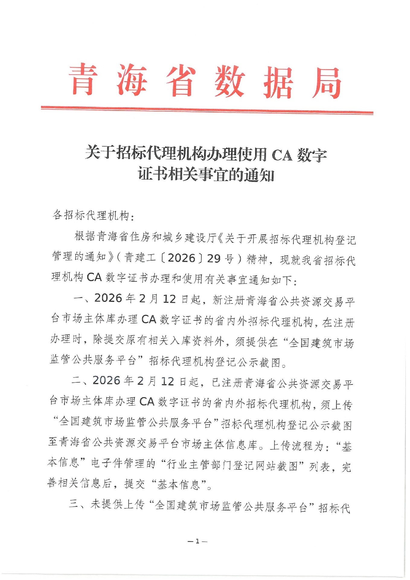 青海省数据局关于招标代理机构办理使用CA数字证书相关事宜的通知