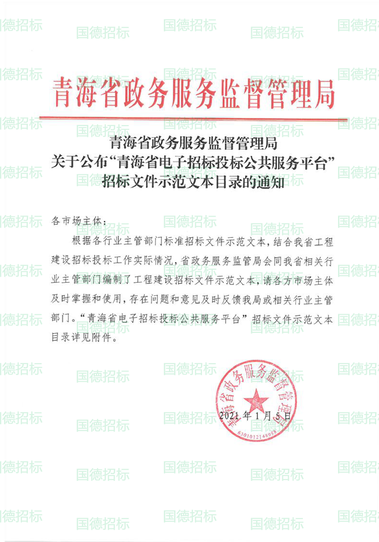 关于公布“青海省电子招标投标公共服务平台”招标文件示范文本目录的通知