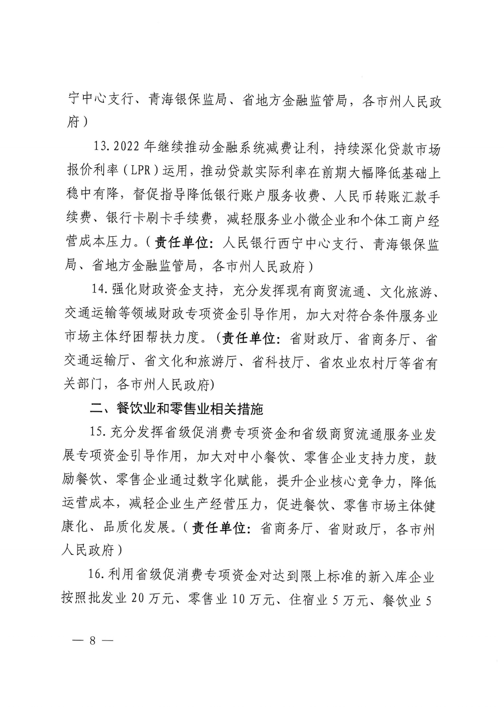 转发《青海省进一步促进服务业领域困难行业恢复发展若干政策》的通知(青发改财贸〔2022〕231号)